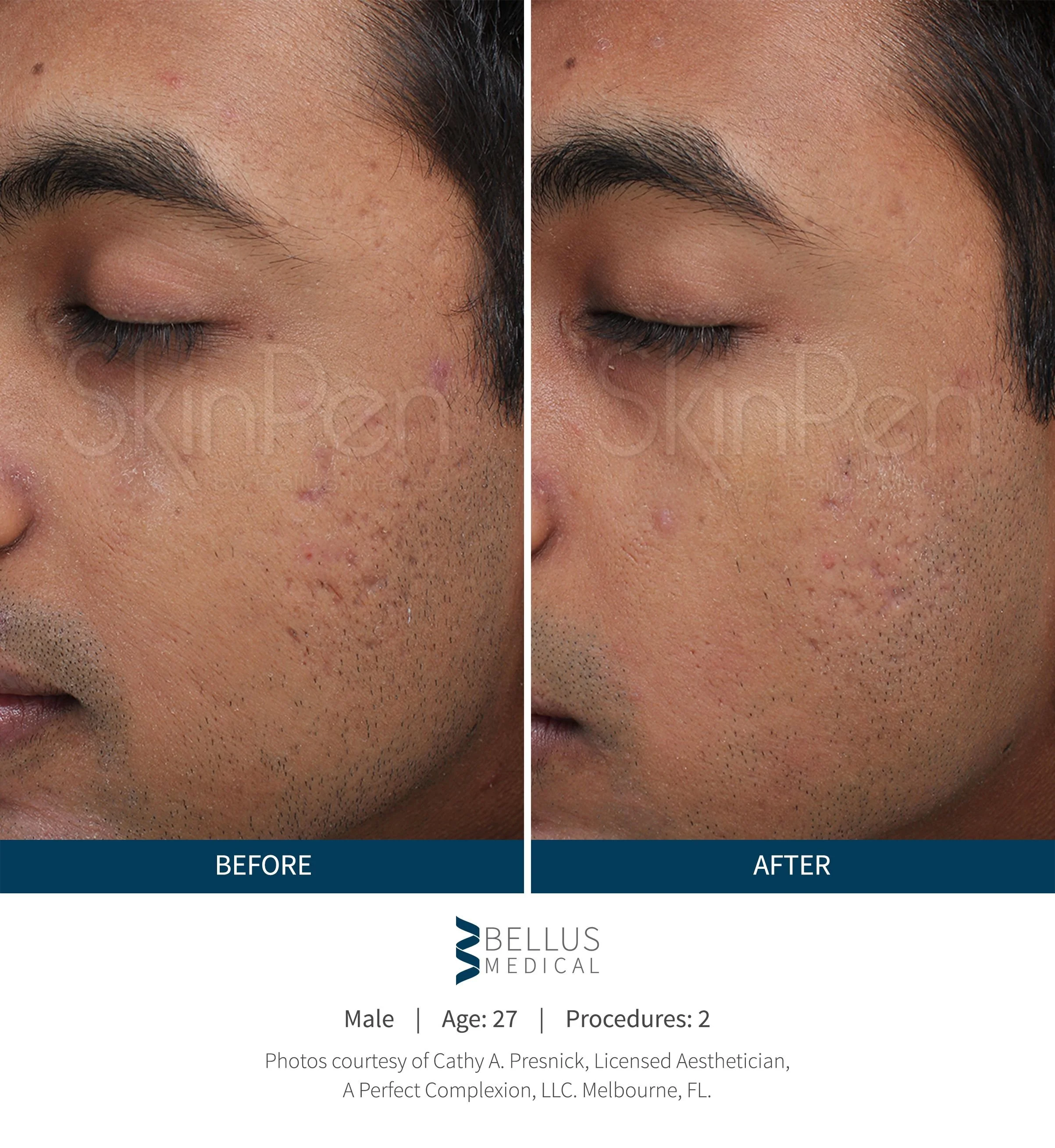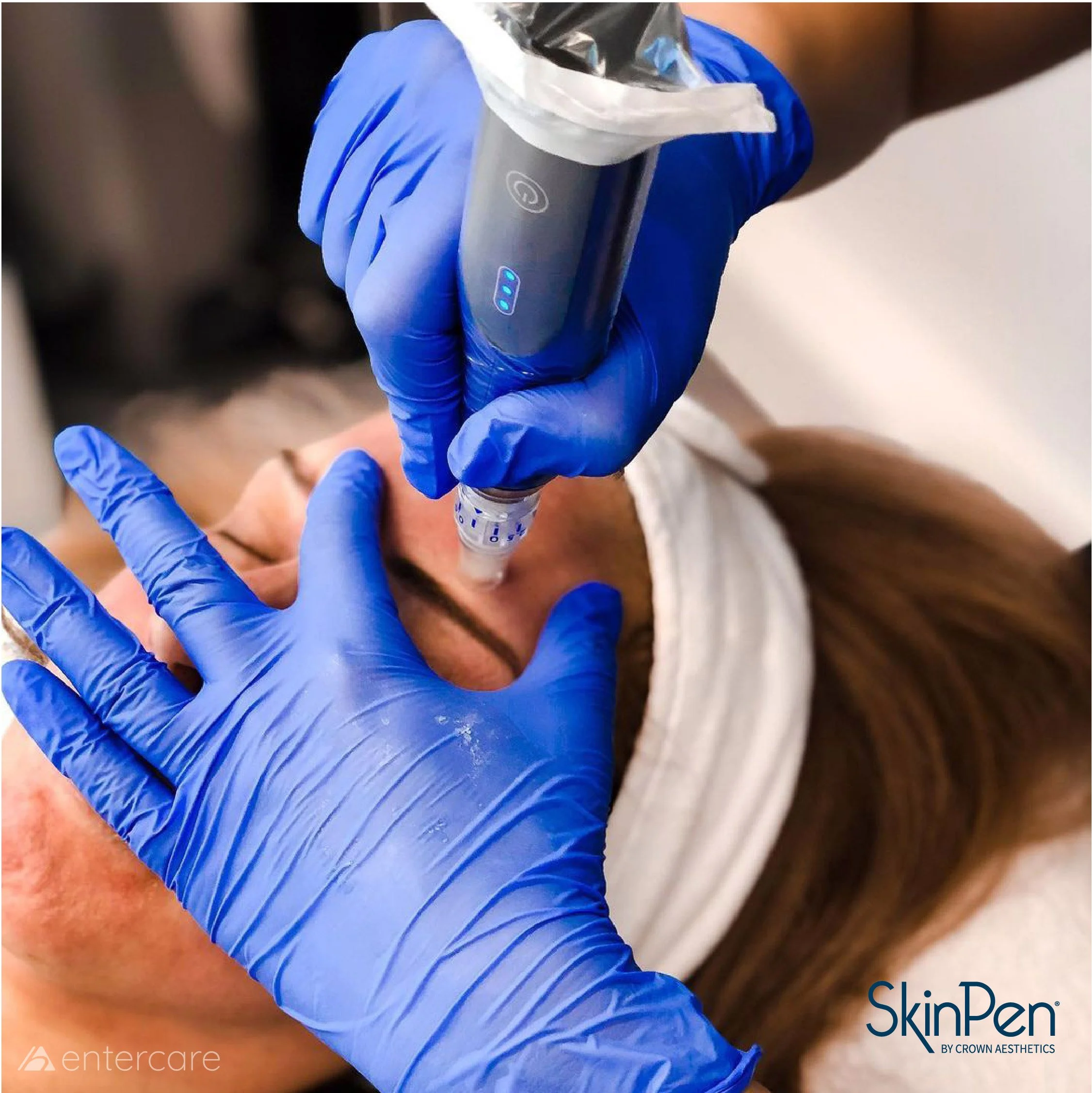 De skinpen is een medisch microneedling apparaat. D.m.v. micro naalden worden er gaatjes in de huid gemaakt. Deze gaan net tot in de lederhuid. Hier wordt je collageen, elastine en hyalluron aangewakkerd om in herstel te gaan. Doordat je huid zodanig in herstel gaat, krijg je een veel mooier en voller huidoppervlak.